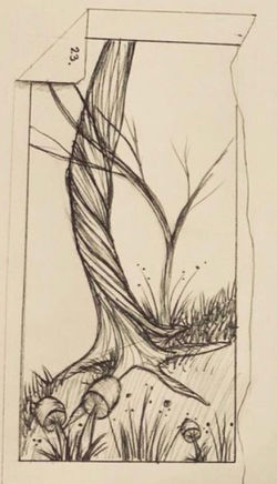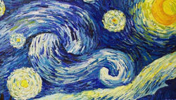 The set consisted of a painted 16' diameter circle on a piece of masonite on the stage floor. The director requested a yin&yang with a tree and night/day skies. The only other parameters were: 'painterly' and 'colorful.'